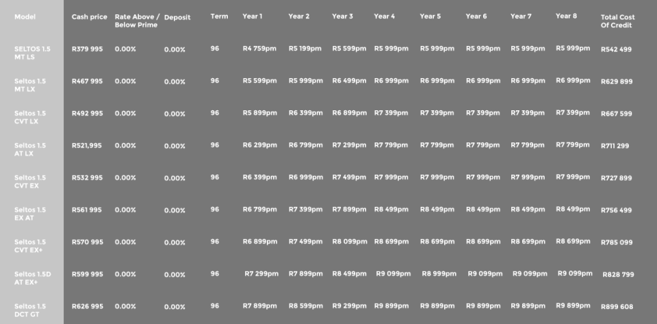 New Kia Seltos payment plans.