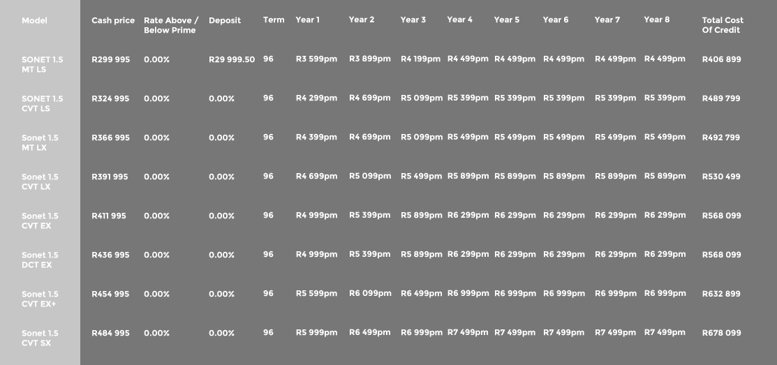 New Kia Sonet payment plans.